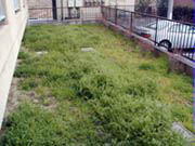左は西方向、右は東方向から前庭の全体を3月12日に撮影した画像ですが、クリムソンクローバ(フェンス側)もヘアリーベッチ(住宅側)も丈が余り伸びていないのが解ります。本来は10月に播く予定でしたが、人頼みの為11月にずれこむ。この時期は非常に心配して居りましたが、藤井先生には「この頃はこの程度で心配無し」と御教授頂く。 |