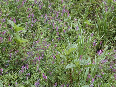 右はヘアリーベッチの結実した画像で、一目で豆科である事が解る。 食べられそうな感じもするが、一部の学者は毒性が有ると言っている様である。 もともとは牧草なのである?・・・ |