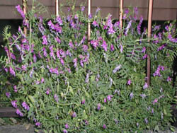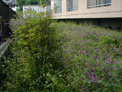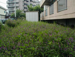 右の画像は一番日当たりの悪いエリアにあるドウダンツツジとヘアリーベッチ。 この画像でも解るが@群生している。 |