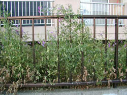 左はまだまだ旺盛に成長しているヘアリーベッチで、此処は日当たりの良いせいかしっかりと結実もしている。