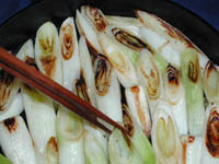 長葱の切り口が軽く焦げて来ましたら、裏返しにして更に火を通して、軽