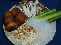 牛肉は取り易い様に、色添えの長葱の青身と供に皿に載せます。 常識です が白滝は適当に刻んで下さい。 焼き豆腐もお口に合う程度に切って下処理し ます。 椎茸の石突きは、縦に裂いてフライパンで炒って醤油をかけても美味 しいですね。 |